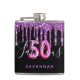 50 Fabulous birthday black purple glitter script Hip Flask