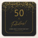 50 Fabulous Birthday Gold Black Glitter Square Paper Coaster