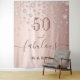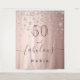 A trendy and glamourous 50th birthday tapestry. A girly rose gold coloured background decorated with rose gold faux diamonds. With the text: 50 and fabulous. Personalise and add a name. Brown coloured text. The word Fabulous is written with a modern hand lettered style script with swashes.