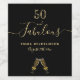 Simple and elegant 50th birthday wine label. A classic black background with two sparkling wine glasses, flutes as decor. With the text: 50 and fabulous. Personalise and add a name and a date. Date of birth or the date of the party. Golden letters. The word Fabulous is written with a modern hand lettered style script with swashes.