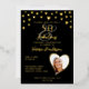 Create an elegant solid black and gold 50th birthday invitation with a heart-shaped photo (please use the template to upload your picture before ordering). Text template makes it easy to customise the invites with your data, such as a birthday lady's name, event date, venue address, and RSVP data. You can also change the milestone to 30, 40, 60, etc. Real gold foil is on the front side of the card.