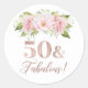50 & Fabulous Birthday Rose Gold Pink Floral Classic Round Sticker