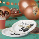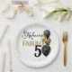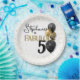 Celebrate this fiftieth birthday milestone with this elegant and glamourous black and gold large round paper plates. They are also adorned with glitter balloons in black and gold, surrounded by a gold glitter edge. Created by Simply Farmhouse Press.