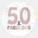 50 & Fabulous Fun Confetti Pink Trendy Typography Classic Round Sticker