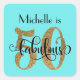 50 & Fabulous Gold Glitter Birthday Aqua Square Sticker