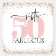 "50 & Fabulous" Minimal Pink and Black Glitter Square Sticker