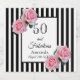 A label for a 50th birthday party. Classic slim black and white vertical stripes as background. With girly and feminine pink roses as decoration.