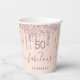 For a glamourous and feminine for a 50 and Fabulous (or any age) birthday party. A feminine rose gold gradient background. On the front and the back: Personalise and add a name and age 50. Decorated with faux glitter drips, paint dripping look.