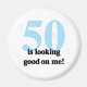 50th birthday T-shirts, mugs, cards, buttons, and more with text that reads "50 is Looking Good on Me"!