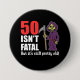 50 Isn't Fatal But It's Still Pretty Old black button. A great button for someone turning fifty. It features a cartoon grim reaper. A great 50th joke button.