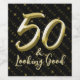 Help someone start their 50th year of on a positive note with this easy to customise gold elegant script "50 & Looking Good" birthday wine bottle labels for any 50th birthday party. The personalised name on the background is a fresh modern typography look for the birthday person who's looking good.
