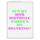 It's my 50th birthday, where's my spanking? Humourous design that let's everyone know this 50 year old wouldn't object to a good spanking. Makes a great 50th birthday gift for the open minded 50 year old.