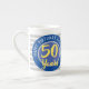 50 Years Birthday Commemorative Mug with grey horizontal stripes. 50 years old.