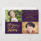Invite your guests with this 50th birthday party invitation in purple and gold with string lights featuring a retro typography design stating 50 YEARS IN THE MAKING which integrates their birth year within the design. Include THEN and NOW photos for a fun invitation. Party invitation details are on the back side.