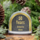 50 Years appears in faux (not foil) gold text on a black background. Under that text, you can personalise this snow globe with the company name.