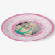 50 Your Photo Random Number Pattern Pink/White Paper Plate