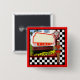 Square button with an image of a 50s retro diner sign, red diner clock, and a vintage 50s female server on a black and white checkerboard. See the entire Nifty 50s Buttons & Pins collection in the PARTY FAVORS section.