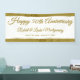 Add this Happy 50th Wedding Anniversary Banner to your event accessories. Designed with gold coloured lettering and stripes, the text reads: Happy 50th Anniversary, The Couple's Names, The Wedding Date and Anniversary Date. To personalise, simply use our easy template to insert the names and dates, replacing the sample text. It's fast and easy. Enjoy!
