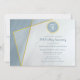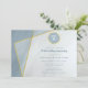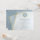 This simply designed, modern, geometric style 50th wedding anniversary party invitation features a dusty blue colour theme with calligraphic elements, asymmetric gold frame accents, and marble texture appearance - easily customise the text elements for any anniversary or birthday celebration - by katz_d_zynes