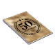 Gold foil style 50th-anniversary notebook with a business logo and year. Ideal for the boss and employees or as promotional supplies for customers. Commemorative design with a laurel branch and stars. The logo can be changed for text by clicking the button to edit the design.