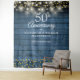 Featuring delicate gold hearts confetti, pretty string lights and blue rustic barn wood panels, this 50th golden wedding anniversary photo booth backdrop will add fun and memories to your celebration event. Designed by Thisisnotme©