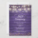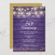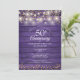 Featuring pretty string lights and delicate golden love hearts on a rustic purple wood background. Personalise with your special fifty years golden wedding anniversary information in chic gold lettering. Designed by Thisisnotme©