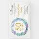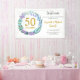 This Banner for 50th wedding anniversary celebration features a delicate floral greenery wreath made of bluebells, plants, and lilac flowers. Banner can be easily personalized with your special golden anniversary information in elegant text. Matching party supplies and stationery are available in "50th Wedding Anniversary Bluebells Floral Wreath" collection.