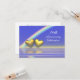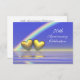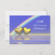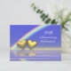 50th golden anniversary invitation with a rainbow and two golden hearts floating on the blue water. Customise the sample text on the back with your own information for your event.
