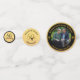 Decorate for a fiftieth wedding anniversary with beautiful golden lovebirds confetti that can be personalised with text and two photo templates. Original vector design by Night Owl's Menagerie, 2021.