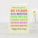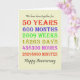 50th anniversary card counting down the years, days, months, hours, and minutes that you have been married. Funny, but with a romantic verse inside. A card to give pause for thought! Leap years have been taken into account!