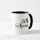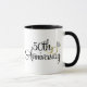 "50th Anniversary" on front and back with two wedding rings, one with a diamond.