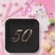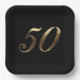 50th Birthday, Wedding Anniversary Party, Faux Gold Number 50 on Black Background, Elegant Anniversary Party Paper Plates for your guests