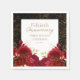 Elegant Red Gold Floral Wedding Anniversary Napkins. Faux gold foil leaves. Script font highlights with easy to read serif name font. Easy to adjust for your own wedding needs. Personalised wedding supplies