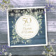 Featuring delicate soft watercolor country garden greenery and pretty string lights on a blue wood panels background, this chic rustic 50th wedding anniversary design can be personalised with your special anniversary information in elegant gold text. Designed by Thisisnotme©