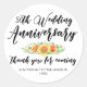 Thank your guests in style with this yellow floral 50th anniversary thank you sticker. Modern script font is used for 50th Wedding Anniversary and Thank you for coming. a yellow spray of sunflowers and roses is at the centre of the round sticker. Your names and wedding date are at the bottom. The white background will complement envelopes of every colour.