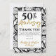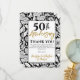 A minimal black and white 50th wedding anniversary party thank you card. This striking sunflower design is a gorgeous way to send an understated but striking thank you after your 50th anniversary event. Lino print effect sunflowers with black typography.