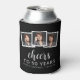 50th Birthday 3-Photo Black White Script Cheers Can Cooler