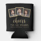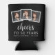 This custom 50th birthday can cooler features a collage of three custom square photos above the phrase "Cheers to 50 years" in elegant white calligraphy script and sans serif font on a black background. Add the guest of honour's name and birthday below. A great way to celebrate someone who's turning fifty!