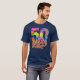 I give wanted to give this a 4 instead of a 5 because these Basic DARK T0shirts run unexpectedly SLIM or Narrow. Which is great if you do not have a potbelly, but I have a paunch. It isn't the shirt's fault that I've got a beer belly. The design and shirt itself is a quality cotton shirt. The color is more of a deep purple, but still a very pretty color. The Basic DARK T-shirts run a bit SLIMMER than the Basic Ts. The neck is a fraction narrower (or seems to be narrower) also. I'm a paunchy middle-aged woman and my neck is 12 inches (31cm) thick and the neckline fell about the same as in the photo of the man, and I had the desire to tug it a bit. So if you're a thick necked man or like loose shirts, be aware these are slimmer shirts. Once I get rid of my lockdown paunch it'll look great. The shirt washed well in cold water with no apparent bleeding. We don't have a dryer, so it hung dry. Did not shrink. Love the colors and the design. The design looks smaller on my shirt than it does on the model on-line. But still, it looks good on the shirt. The printing looks as it does on the model, just the size seems fractionally smaller. Washed garment in cold water, hung dry and design appeared unaffected.