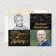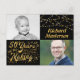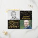 Add two photos (a youth one and a current one) of the birthday honoree to this black and gold party invitation postcard announcing they are 50 years in the making!