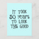 50th birthday, it took 50 years to look this good! Be an original and wear a 50th birthday saying on your t-shirt or give one of our many 50th birthday saying gifts to someone turning 50. Skip the Over the Hill jokes and give a gift that makes him or her feel great! Best prices & best online store for funny 50th birthday gifts and 50th birthday party favour ideas for men & women.