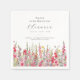 Perfect table decor for an August birthday party. Pink gladiolus is the birth flower for that month. It forms a pretty watercolor bottom border on this floral personalised napkin. The birthday guest of honour's name, age and birthdate are placed above it using elegant calligraphy and typography. All text is editable.