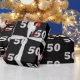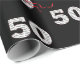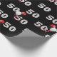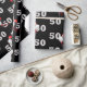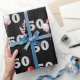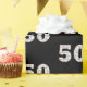 50th birthday party with bold black and white happy and number 50 text on black with party balloon bouquet.
