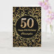 50th Birthday Black and Gold Floral Pattern Card
