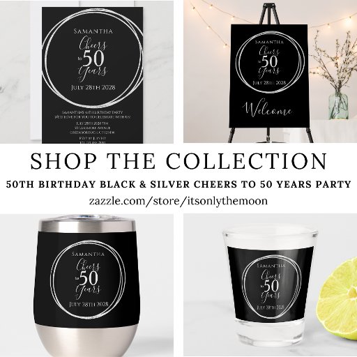 50th Birthday Black Silver Cheers 50 Years PartyDesigned by Only The Moon