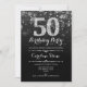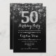Elegant black white design with faux glitter silver. Adult birthday. Features diamonds and script font. Men or women bday invite. Perfect for a stylish birthday party. Message me if you need further customization.