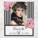 For an elegant and fun 50th birthday party. Classic slim black and white vertical stripes as background. With girly and feminine flowers, pink roses and peonies as decoration.