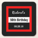 50th Birthday Black with Red Frame Geometric Z50 Square Paper Coaster