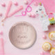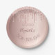 A paper plate for a girly and glamourous 50th birthday party. A rose gold background with drips, paint drip look. The text: The name is written in dark rose gold with a large modern hand lettered style script. Template for name, age 50 and a date.