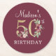 50th Birthday Burgundy Gold Personalised Round Paper Coaster